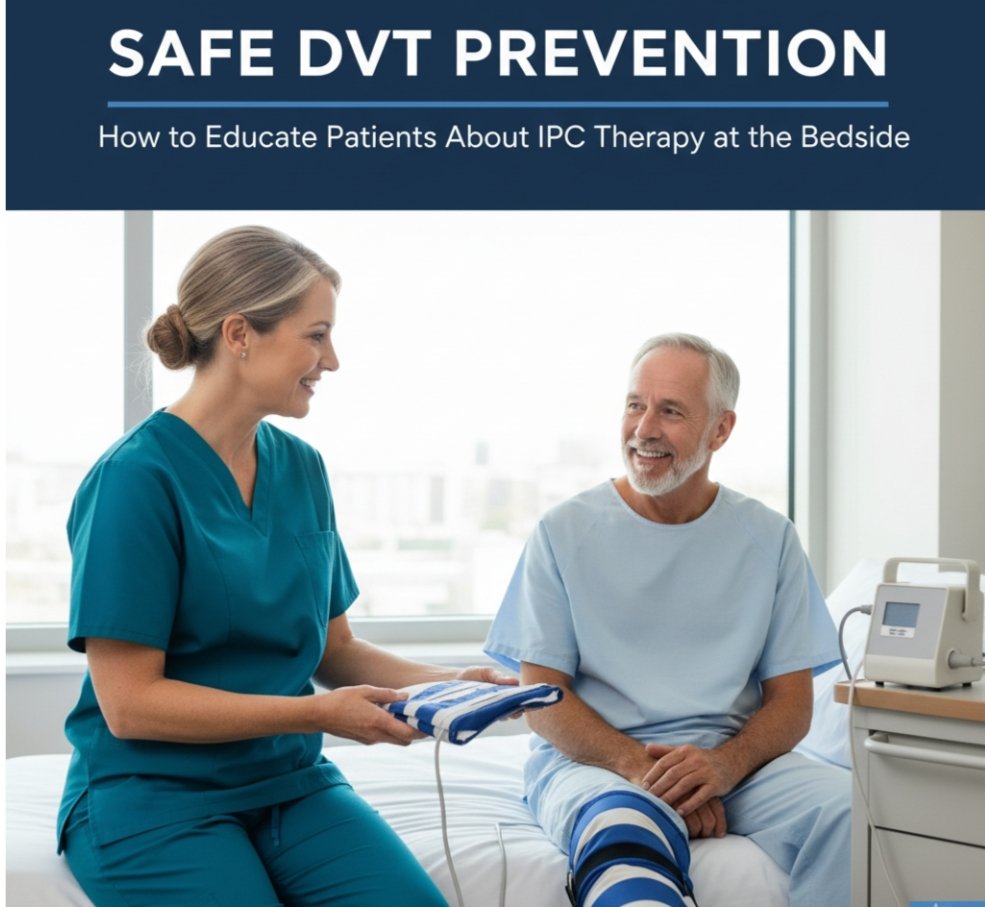 Why DVT Prevention Matters in Every Hospital Setting Deep Vein Thrombosis (DVT) remains one of the most common and preventable causes of morbidity in hospitalized patients. It occurs when blood clots form in deep veins, usually in the legs, leading to complications like pulmonary embolism (PE) — a life-threatening emergency.For patients who are immobile, post-surgical, or critically ill, prevention is a key nursing responsibility. Among the many prevention methods, Intermittent Pneumatic Compression (IPC) therapy stands out as an effective, non-invasive mechanical approach that helps maintain healthy blood flow and reduce clot formation.As frontline caregivers, nurses play a vital role in applying, monitoring, and educating patients about IPC therapy.