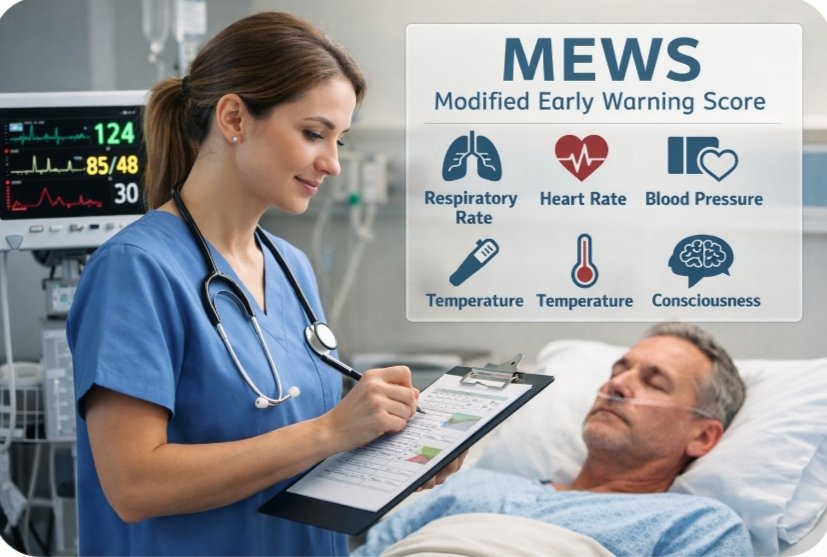 What is MEWS? Learn the Modified Early Warning Score explained simply for nurses. Understand how MEWS works, scoring system, actions, benefits, and why it saves lives in hospitals.