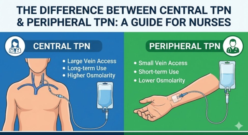 This article breaks down the difference between Central TPN and Peripheral TPN, making it simple, clear, and clinically relevant to your daily nursing practice.